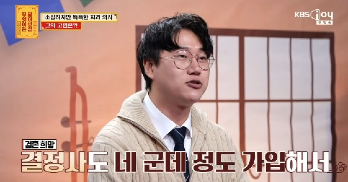 Un dentista de 30 años, que trabaja como médico de salud pública en Seúl, compartió sus dificultades para encontrar pareja en el programa de televisión “무엇이든 물어보살” (What Shall We Do with Our Lives) de KBS Joy el 2 de marzo de 2026. El profesional de la salud expresó su preocupación por la posibilidad de no poder casarse, a pesar de haberse inscrito en cuatro agencias matrimoniales y esforzarse por conocer a nuevas personas.