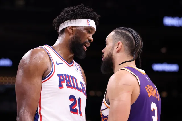 En un tenso momento antes de que los Phoenix Suns y los Philadelphia 76ers se retiraran al vestuario al medio tiempo el sábado por la noche, Joel Embiid y Devin Booker protagonizaron un intercambio de palabras.