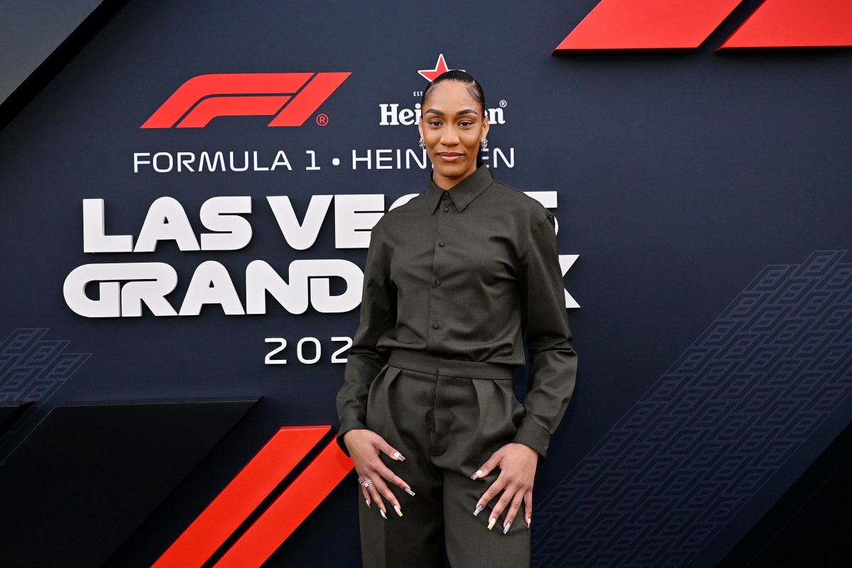 A’ja Wilson attends the F1 Las Vegas Grand Prix on November 22, 2025 in Las Vegas, Nevada.