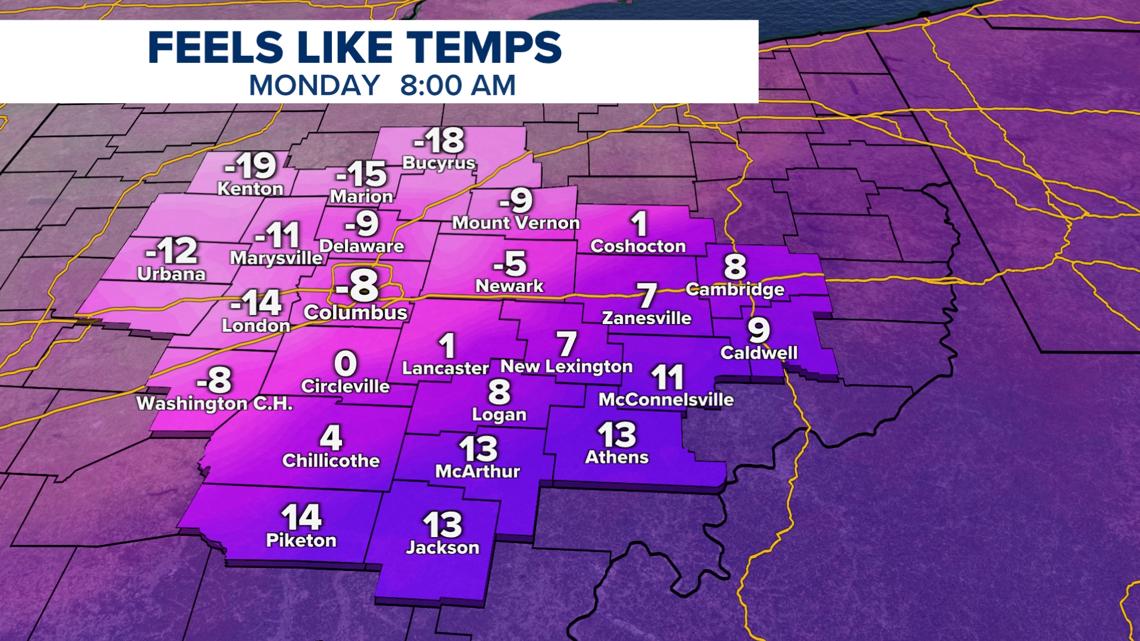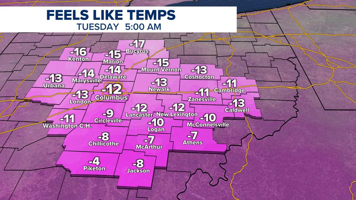 Debido a este aire peligrosamente frío, hemos emitido un Día de Alerta por Impacto Climático de 10TV a partir de la mañana del lunes y que continuará hasta la mañana del martes.