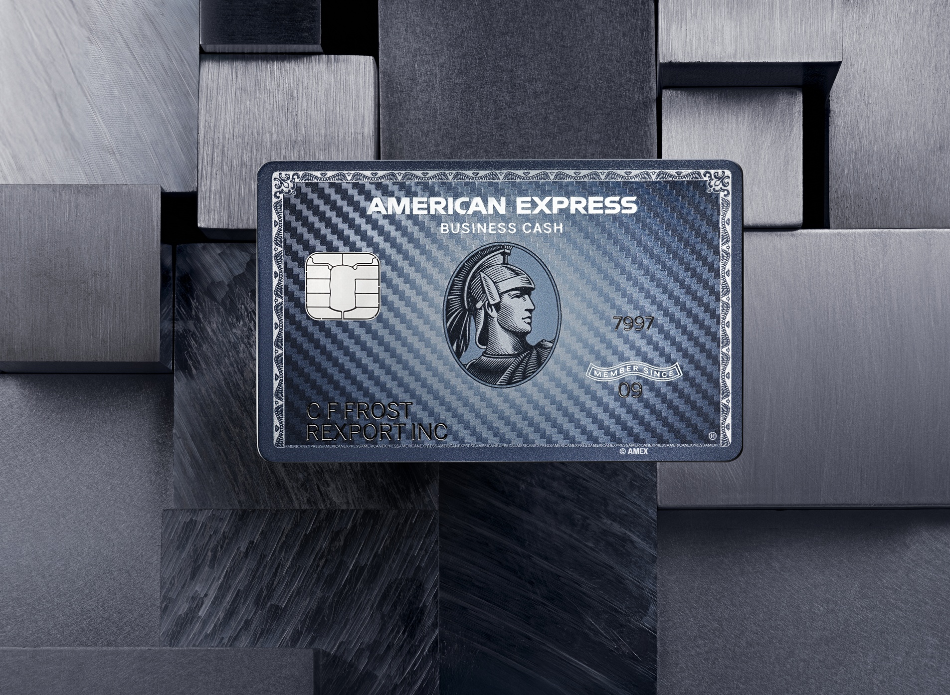 - Tarjeta de metal con un diseño inspirado en fibra de carbono.
