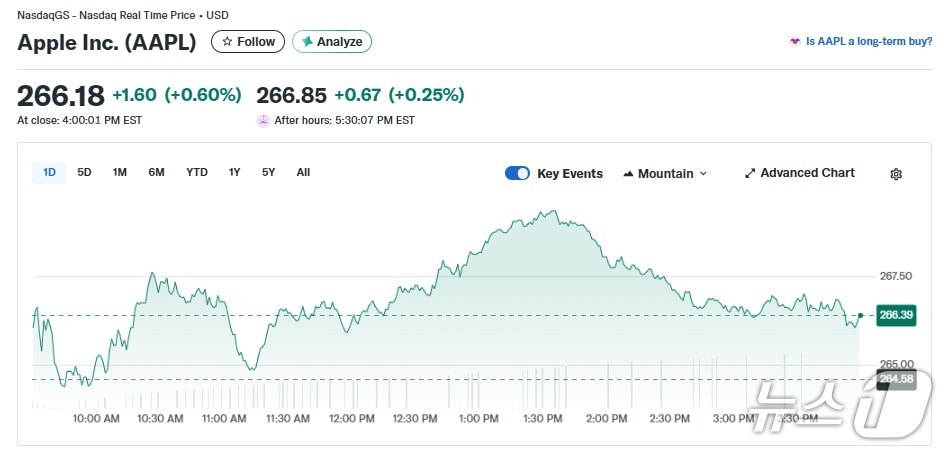 A pesar de la caída generalizada de las principales acciones tecnológicas estadounidenses debido a la incertidumbre arancelaria, Apple logró un incremento del 0.60%. En la sesión del 23 de febrero (hora local de Nueva York), las acciones de Apple cerraron a 266.18 dólares, reflejando un aumento del 0.60%.