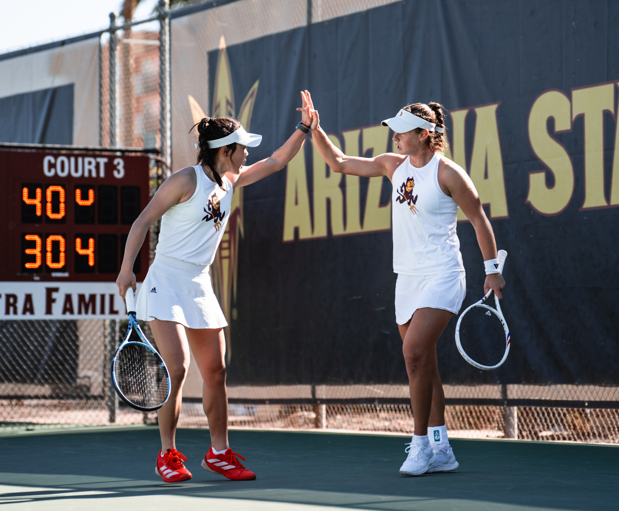 En el segundo partido del día, las Sun Devils se aseguraron el punto de dobles con una victoria de 6-1 de Tverijonaite y Ovrootsky, y luego la pareja en la cancha uno, Evans y Taylor, ganaron su primer partido de dobles del año con un resultado de 6-3, sellando el punto de dobles.