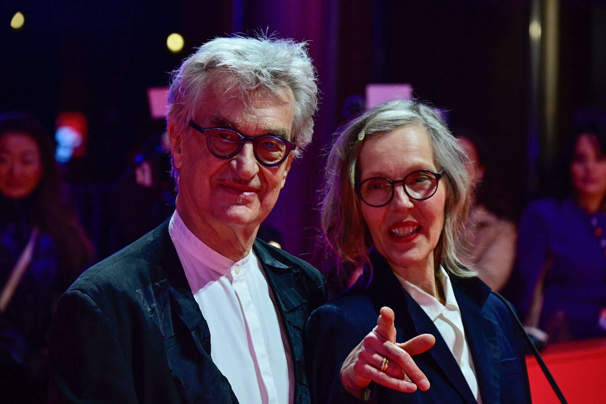 Jury President, German director Wim Wenders (L) and his wife Donata Wenders arrive on the red carpet for the Award Ceremony of the 76th Berlinale, Europe’s first major film festival of the year, in Berlin on February 21, 2026. The 76th Berlin Film Festival draws to a close after 10 days, with 22 films in competition. (Photo by John MACDOUGALL / AFP)