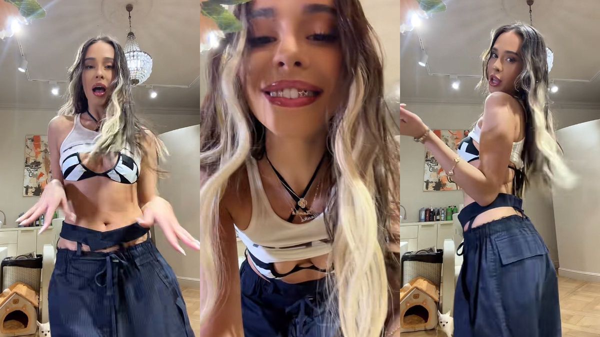 Blanka optó por unos pantalones de tiro bajo con un cinturón llamativo, combinados con un sujetador de bikini y un top anudado de forma desenfadada. Para completar su atuendo, la joven de 26 años añadió unos brillantes en los dientes, que también presumió en el video.