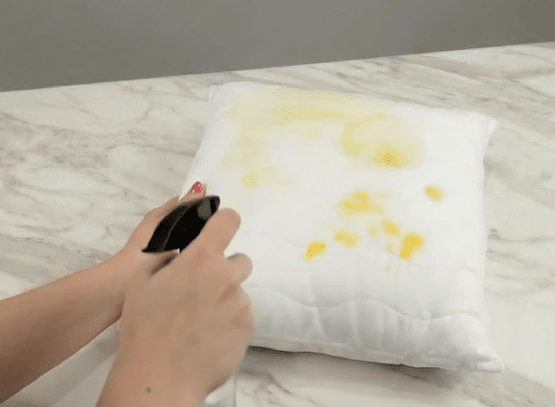 - Fibras sintéticas: después de rociar, aspira la almohada con una aspiradora.