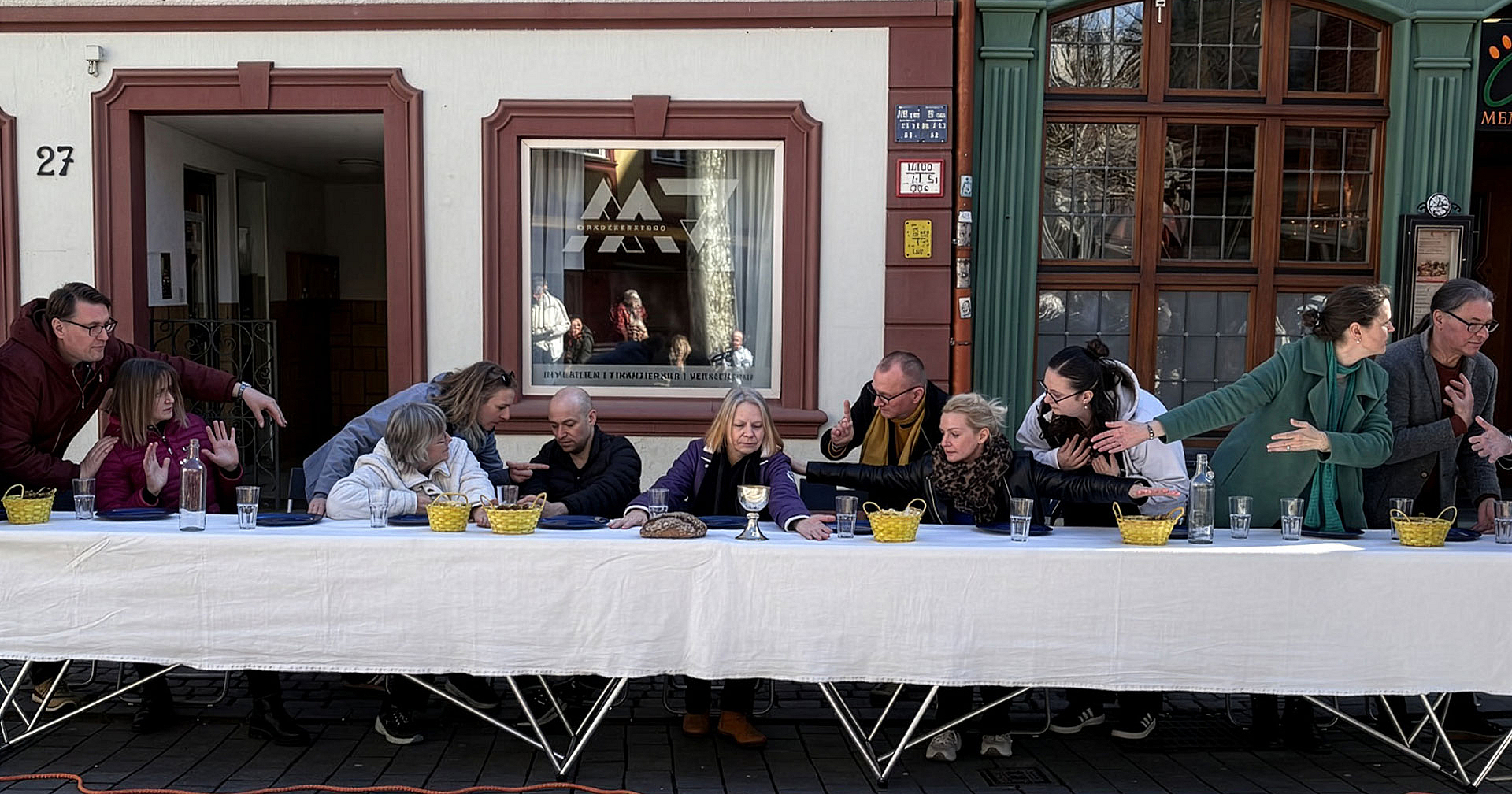 Con la acción “Mahl ganz anders”, evangelisch.de lleva La Última Cena a los espacios públicos como una performance teatral.