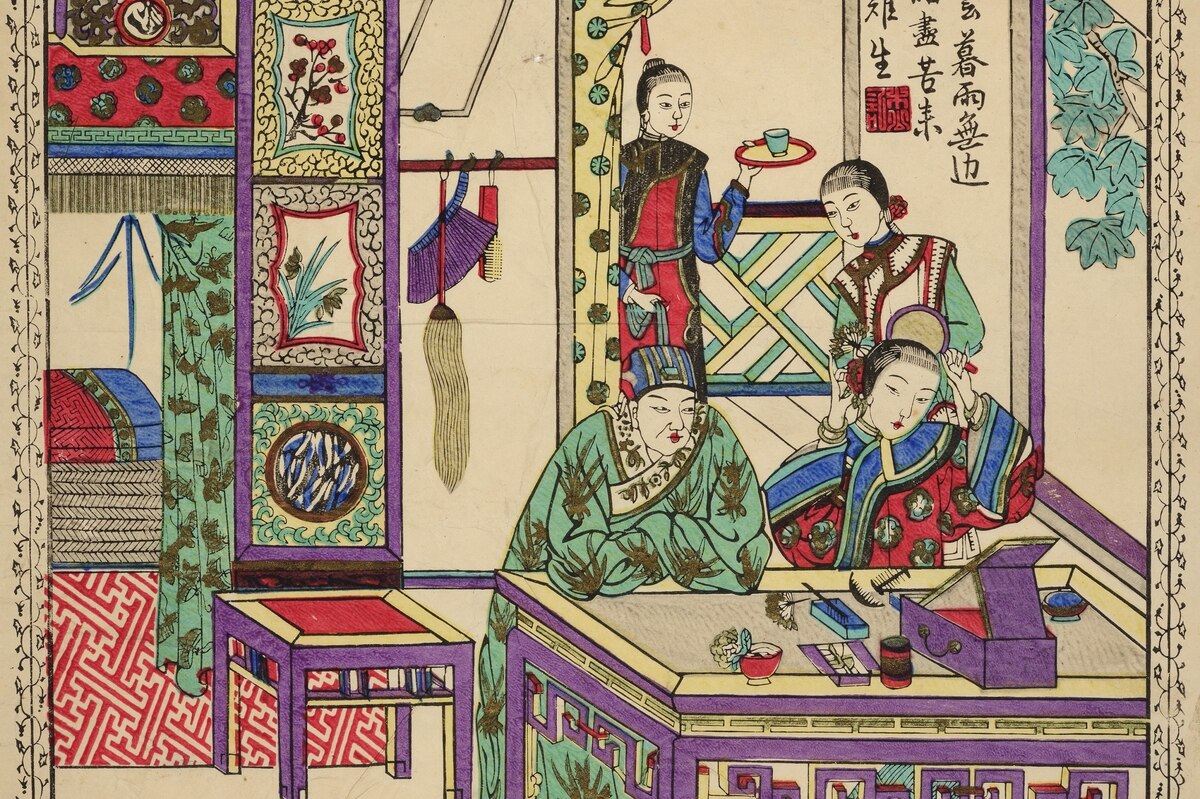 En tiempos de crisis, los palacios imperiales se convirtieron en espacios públicos. La exposición “Druckfrisch aus den Zwanzigern. Einblicke in Chinas Moderne” (Recién impreso de los años 20. Perspectivas sobre la modernidad china) en Hamburgo exhibe un cartel publicitario que muestra a dos mujeres vestidas con ropa moderna y ajustada, conversando entre sauces llorones y cerezos en flor. La ambientación evoca la pintura paisajística china clásica, una época en la que se esperaba que las mujeres se quedaran en casa.