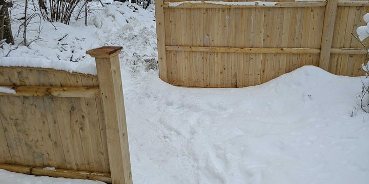 We went out on Saturday, February 21st and cleared snow along the trail at Scenic Drive. There are two wooden fences here where snow had collected and we set to work.