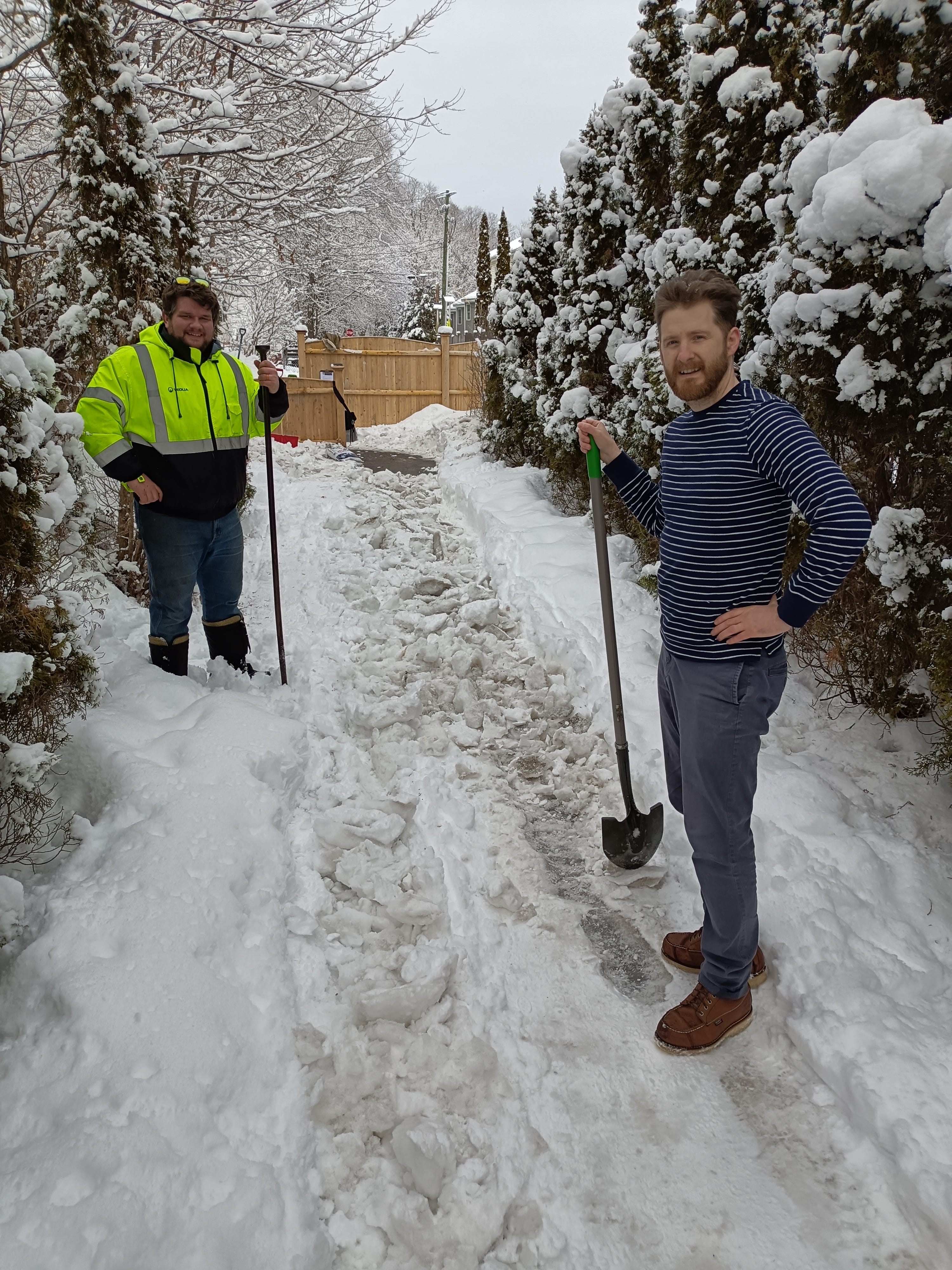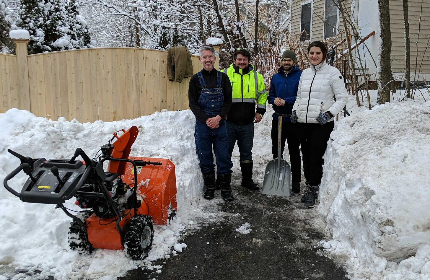 I’ve identified in a previous article that walking around Dover in the winter can be challenging. So, we decided to get together and clear out a section of the Dover Community Trail that was filled with snow. One of our members brought a snowblower and everyone else grabbed a tool to move snow and break up the ice along the path.