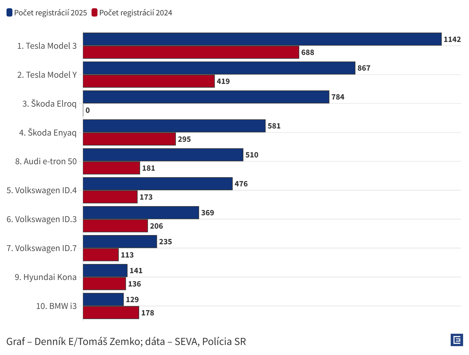 En cuanto a las ventas, los modelos Model 3 y Model Y de Tesla lideraron el mercado eslovaco el año pasado, seguidos por los Elroq y Enyaq de Škoda, según datos de la Asociación Eslovaca para la Electromovilidad (SEVA) y la policía. Es importante destacar que la mayoría de los Tesla que llegan a Eslovaquia son vehículos de segunda mano, mientras que los coches eléctricos de Škoda se venden principalmente como nuevos.