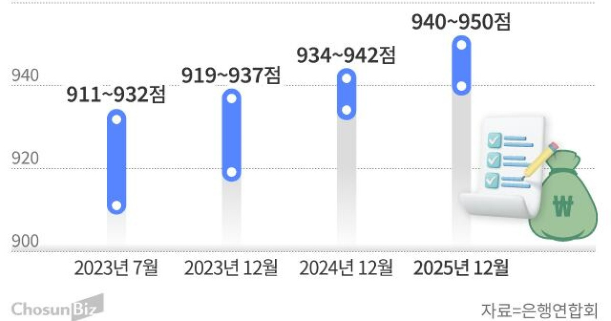 Según datos de la Federación Bancaria de Corea, la puntuación crediticia promedio de los nuevos préstamos al consumo otorgados el mes pasado por los cinco principales bancos comerciales (KB Kookmin, Shinhan, Hana, Woori y NH NongHyup) se situó entre 940 y 950 puntos. Esta tendencia al alza se mantiene desde julio de 2023, cuando la puntuación promedio era de 911 a 932 puntos.