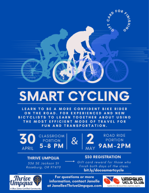 Thrive Umpqua y el Umpqua Velo Club ofrecerán una clase inteligente de ciclismo destinada a generar confianza entre los ciclistas del condado. El programa se llevará a cabo el 20 de abril de 2026 a las 3:05 a.m. Y está diseñado para mejorar las habilidades y la seguridad de los participantes mediante instrucción especializada en técnicas de ciclismo inteligentes.