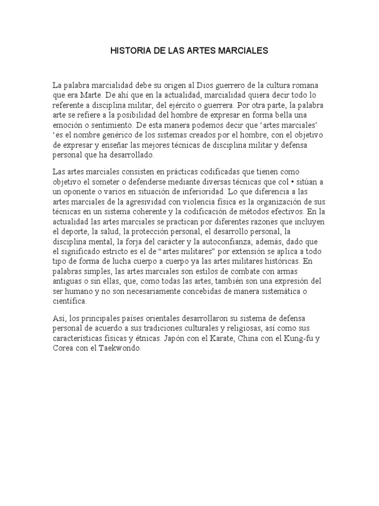 Aunque las raíces exactas de las artes marciales son difíciles de reconstruir, la evidencia más antigua se remonta a milenios. Estas prácticas se basan en patrones inherentes de agresión humana que inspiran el combate simulado —particularmente la lucha— y la optimización del combate cercano como universales culturales. De hecho, muchos de los aspectos fundamentales de las artes marciales están determinados por la fisiología humana, independientemente de la era o la tradición específica.