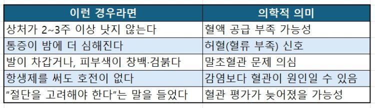 Definitivamente existen casos en los que el tratamiento para salvar los vasos sanguíneos, además del tratamiento con medicamentos y el cuidado de las heridas, puede ser beneficioso. El Dr. Jeon Woong-bae dijo: “El objetivo del tratamiento del pie diabético es proteger los pies del paciente en última instancia, más allá del tratamiento de la herida”, y agregó: “En este proceso, es cada vez más importante examinar los vasos sanguíneos”.