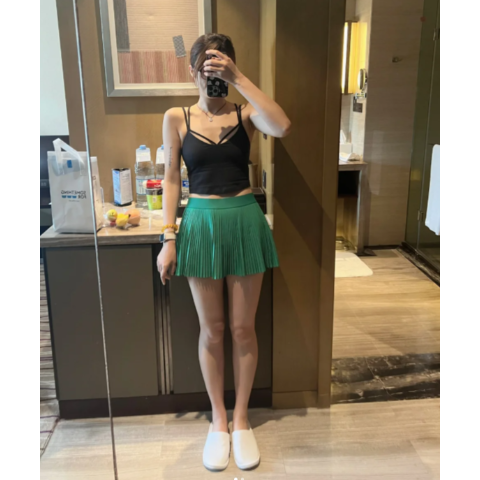 La falda, específicamente una falda de tenis plisada de cintura alta Varsity, parece ser un producto de reciente lanzamiento y con alta demanda, según la promoción.