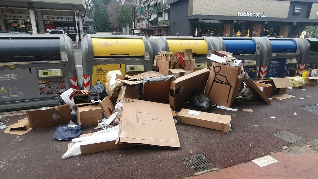 Además, a menudo, durante la noche, personas en situación de vulnerabilidad abren las papeleras con herramientas improvisadas en busca de objetos que, en la sociedad de consumo, son desechados por muchos pero aún útiles para otros.