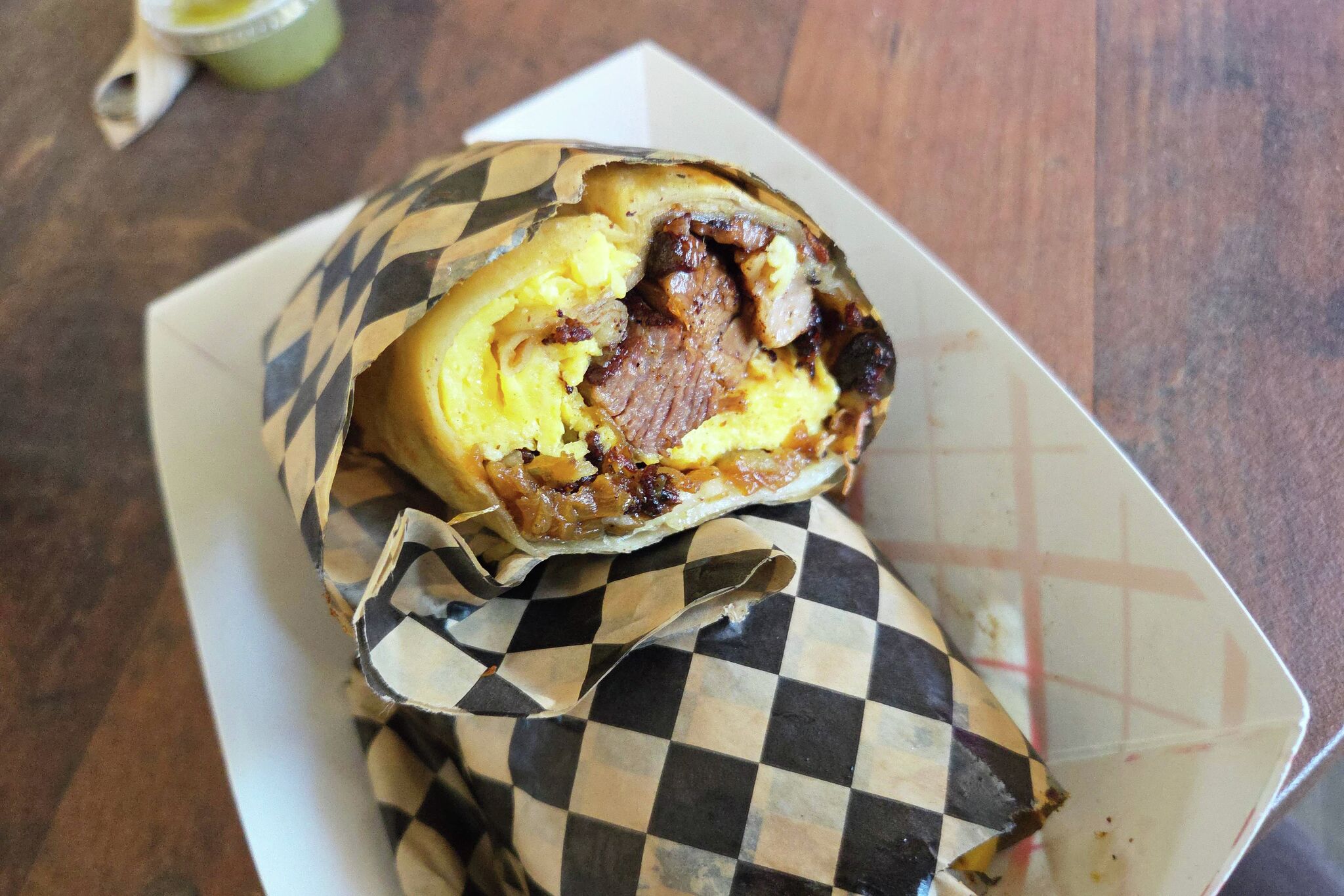 After the recent sale of Oakland’s Sequoia Diner to new owners, I caught wind of ex-employees starting a new concept called Just Vibing, which held its first popup this past weekend. The menu featured sandwiches, burgers and burritos, but the founders promise to deliver a similar made-from-scratch ethos as Sequoia. I visited the inaugural popup at Oakland bottle shop Good Times, and the turnout was overwhelming. I opted for the breakfast burrito, which incorporated thick hunks of smoked brisket, soft scrambled eggs and grilled onions. It was complemented by an earthy salsa verde with sneaky heat. While the setting was different from Sequoia, Just Vibing had a similar charm and affection.