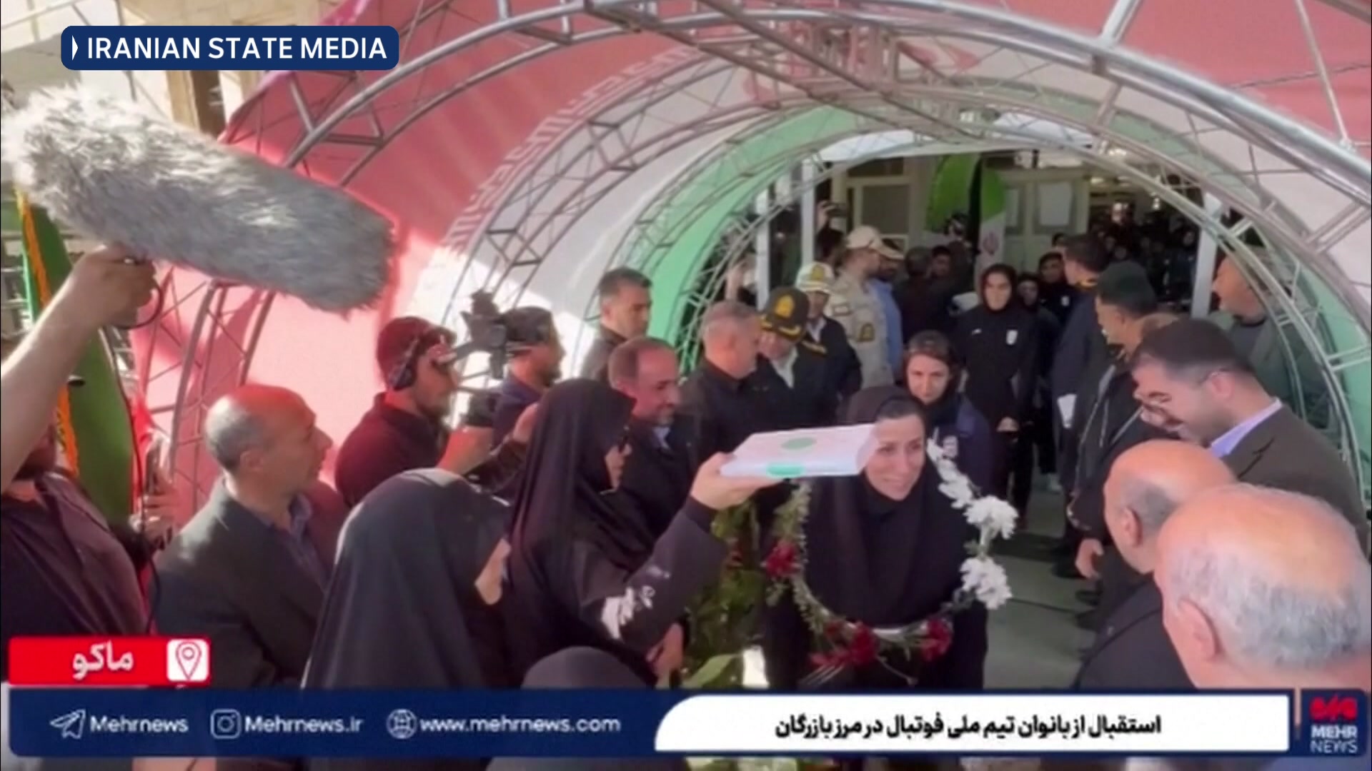 Los medios compartieron imágenes de las jugadoras entrando en Irán después de aterrizar en Turquía y tomar un autobús hacia la frontera, donde fueron recibidas por funcionarios.