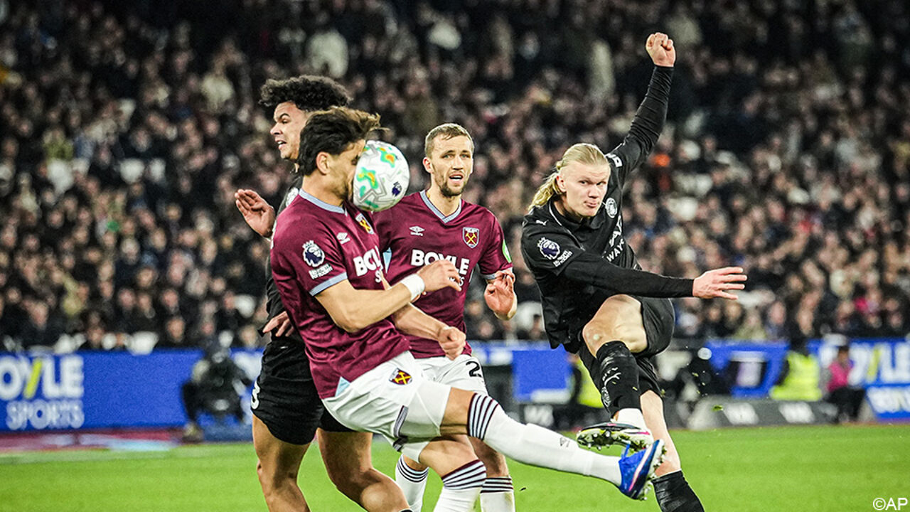 VIDEO – Doelpuntenmaker Mavropanos krijgt pegel van Haaland vol in het gezicht. Premier League voetbal Manchester City. video delen …