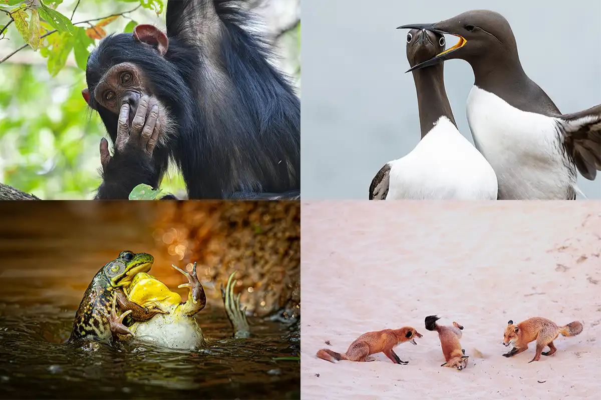 Warren Price ganó el ThinkTANK Bird Award por su imagen perfectamente cronometrada, ‘Headlock’ (Agarre de cabeza); y Maggie Hoffman ganó la categoría Portfolio con su colección de cuatro imágenes titulada apropiadamente ‘Digging for Gold’ (Excavando oro), que presenta a un chimpancé laborioso rascándose la nariz.