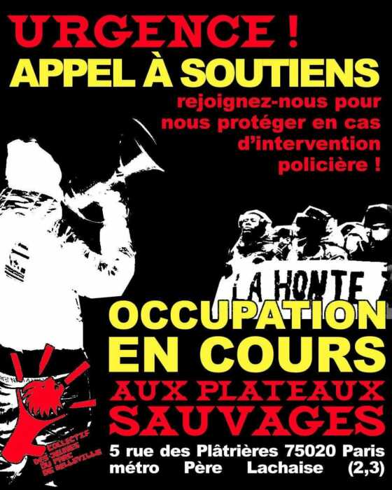 El pasado viernes 19 de diciembre, jóvenes migrantes menores de edad, junto con miembros del colectivo, intentaron ocupar el teatro Plateaux Sauvages con el objetivo de forzar una conversación con la alcaldía de París y otras instituciones responsables de proporcionarles alojamiento. La situación se originó por la necesidad urgente de evitar que estos jóvenes durmieran en la calle, expuestos al frío y a la violencia.