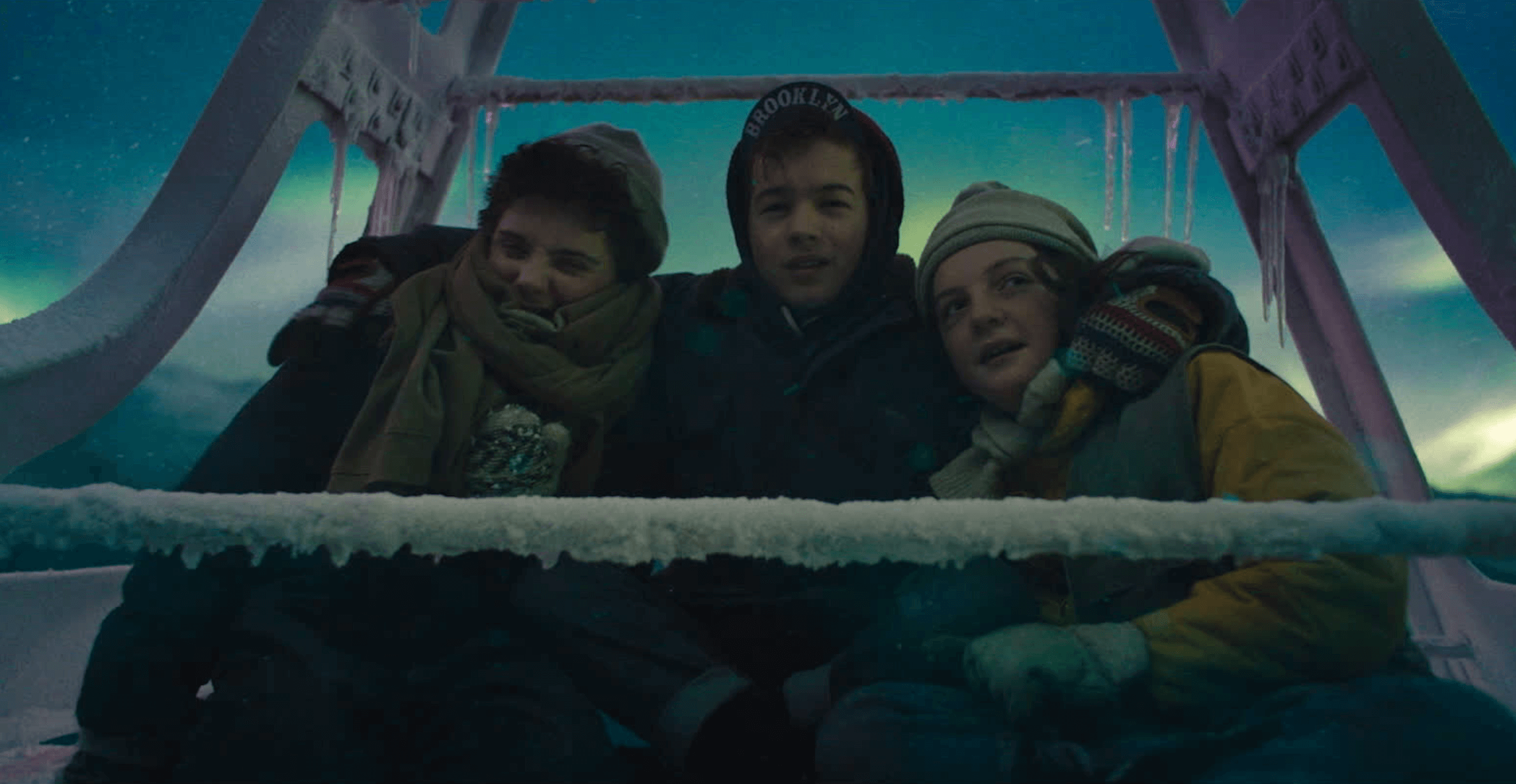 La trama de “Last Ride” se inicia con un prólogo en el presente, donde vemos a Syd (Gustaf Skarsgård), visiblemente afectado por el alcohol, intentando convencer a su hijo, Devin (Samuel Paul Small), de subir a un teleférico en Noruega para alcanzar la cima de una montaña. Este momento nos transporta al pasado, concretamente a 1982, donde un joven Syd (Felix Jamieson) comparte el mismo teleférico, en pleno invierno, con sus amigos Devin (Roman Griffin Davis, conocido por su papel en “Día del fin del mundo: Migración”) y Jamie (Charlie Price), acompañados por un guía llamado Øyvind (el talentoso Kristofer Hivju, de “Juego de tronos” y “The Witcher”).