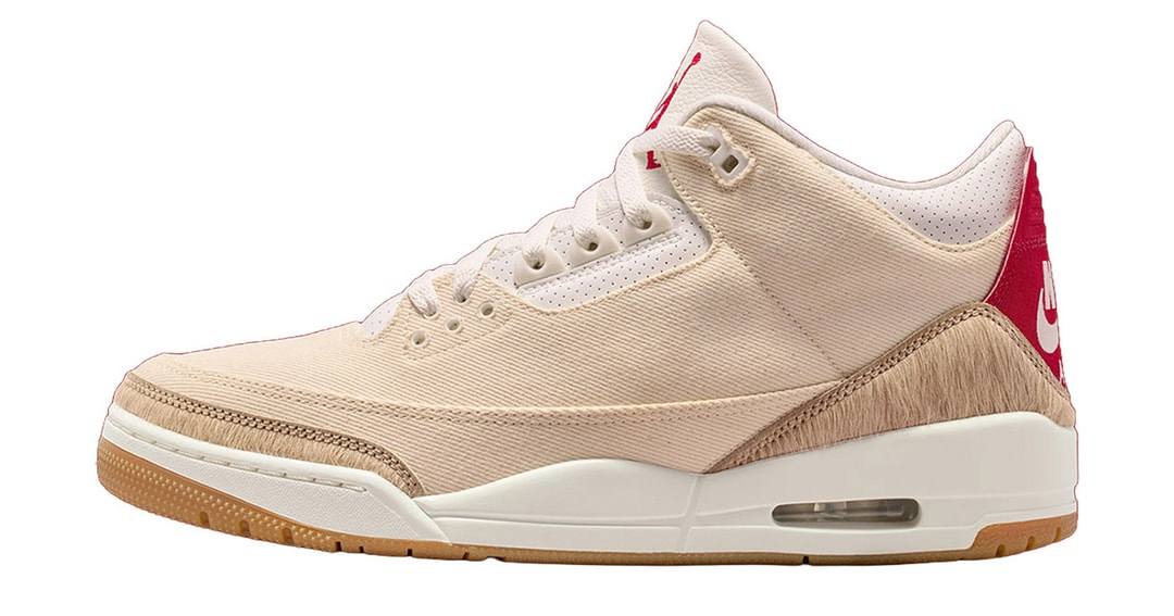 En lugar del icónico estampado de elefante del Jordan 3 original, el modelo incorpora material de pelo de poni en el guardabarros y el talón, mientras que la placa del talón está acabada en denim. El empeine también ha sido actualizado, utilizando tejido de denim en lugar del cuero tradicional, para reflejar la esencia de Levi’s.