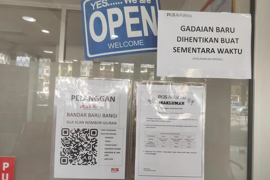 Durante una visita de ST a un establecimiento de Pos Malaysia en Bangi, Selangor, un aviso impreso informaba a los clientes de que la sucursal no aceptaba nuevos empeños porque se había quedado sin fondos.