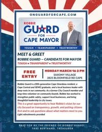 According to campaign materials, Robbie Guard, a candidate for mayor of Cape Girardeau, will host a public meet-and-greet later this month.