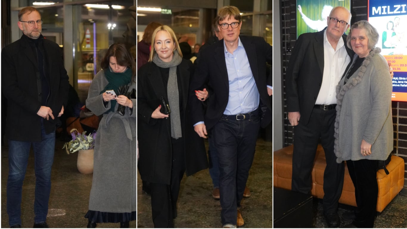 El estreno de la obra en el Teatro Dailes contó con la presencia de numerosas personalidades de la sociedad letona, incluyendo al Ministro de Transportes, Atis Švinka, el director de la Ópera, Sandis Voldiņš, el empresario Dāvis Auškāps acompañado de su esposa Aija, la directora de Radioteatro, Māra Eglīte junto a su esposo Ģirts, y reconocidos actores como Jānis Paukštello y Marija Bērziņa. También asistieron Baiba Prindule-Rence, conocida decoradora de interiores, la personalidad de la radio Elita Marga, y otros amantes del arte teatral.