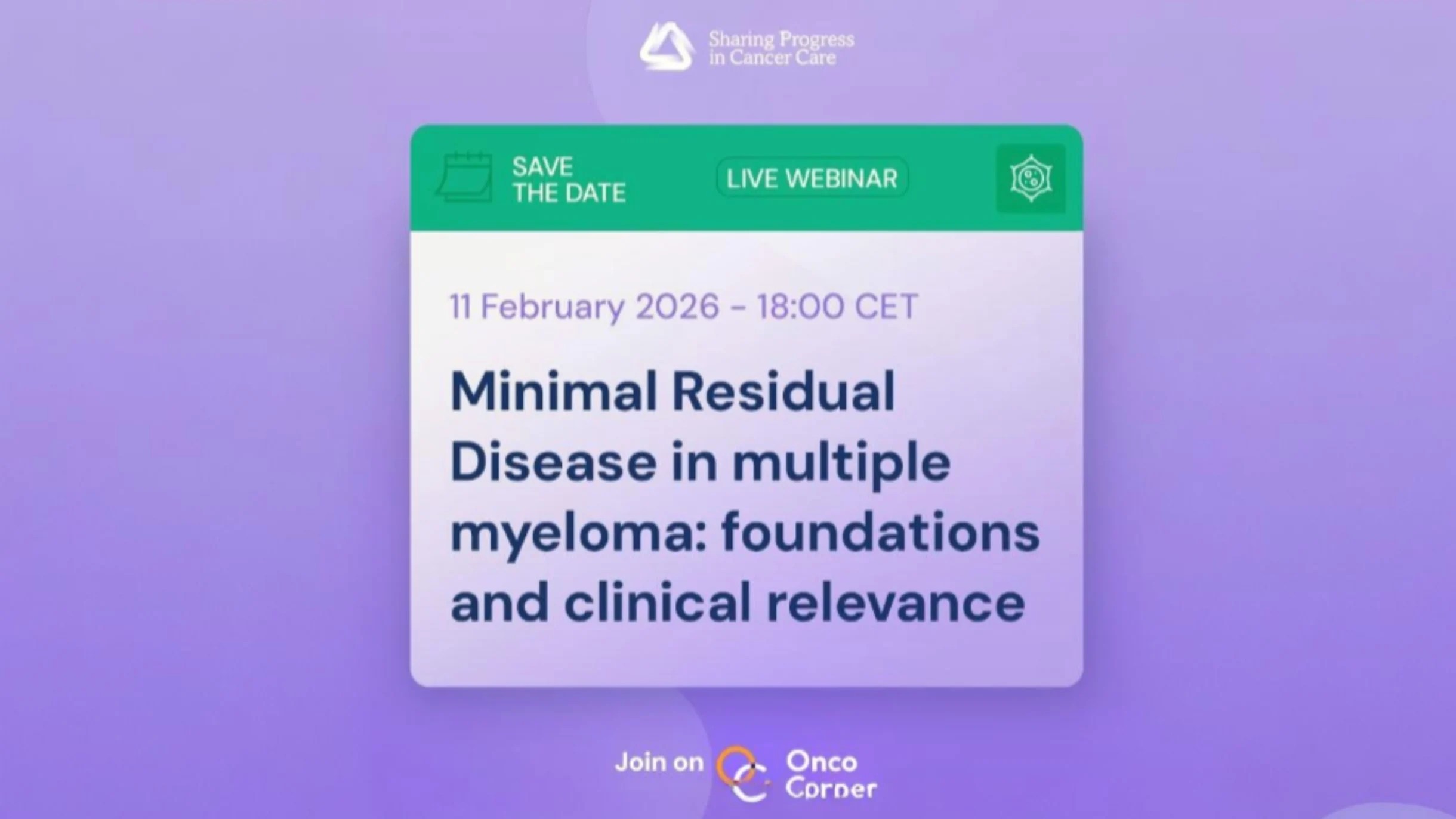 Se ha programado un webinar inaugural titulado “EMR en mieloma múltiple: fundamentos y relevancia clínica” para el miércoles 11 de febrero de 2026 a las 18:00 CET.