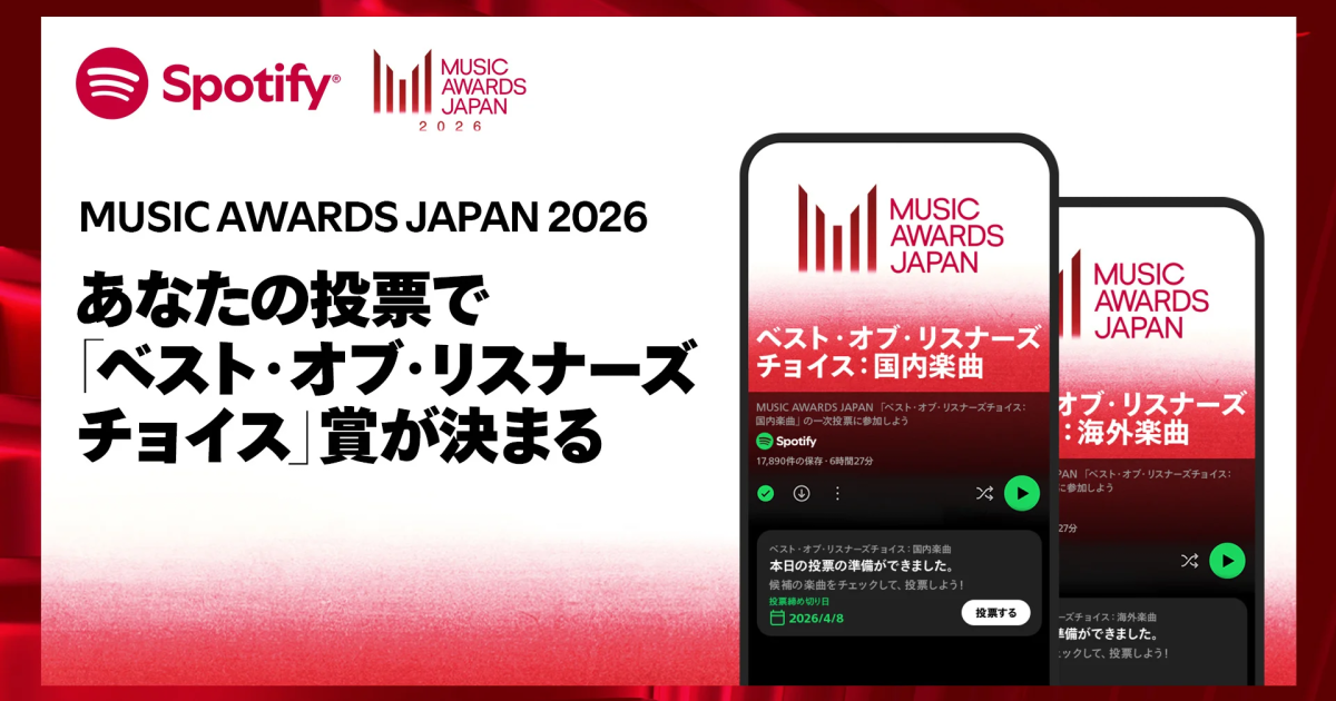 La votación pública para los MUSIC AWARDS JAPAN 2026 se abrió el 19 de marzo. Spotify es la plataforma de votación oficial para tres categorías: ‘Best of Listeners’ Choice: Japanese Songs’ (Lo Mejor a Elección de los Oyentes: Canciones Japonesas), ‘Best of Listeners’ Choice: International Songs’ (Lo Mejor a Elección de los Oyentes: Canciones Internacionales) y la nueva categoría ‘Best Global Hit from Japan’ (El Mejor Éxito Global de Japón).
