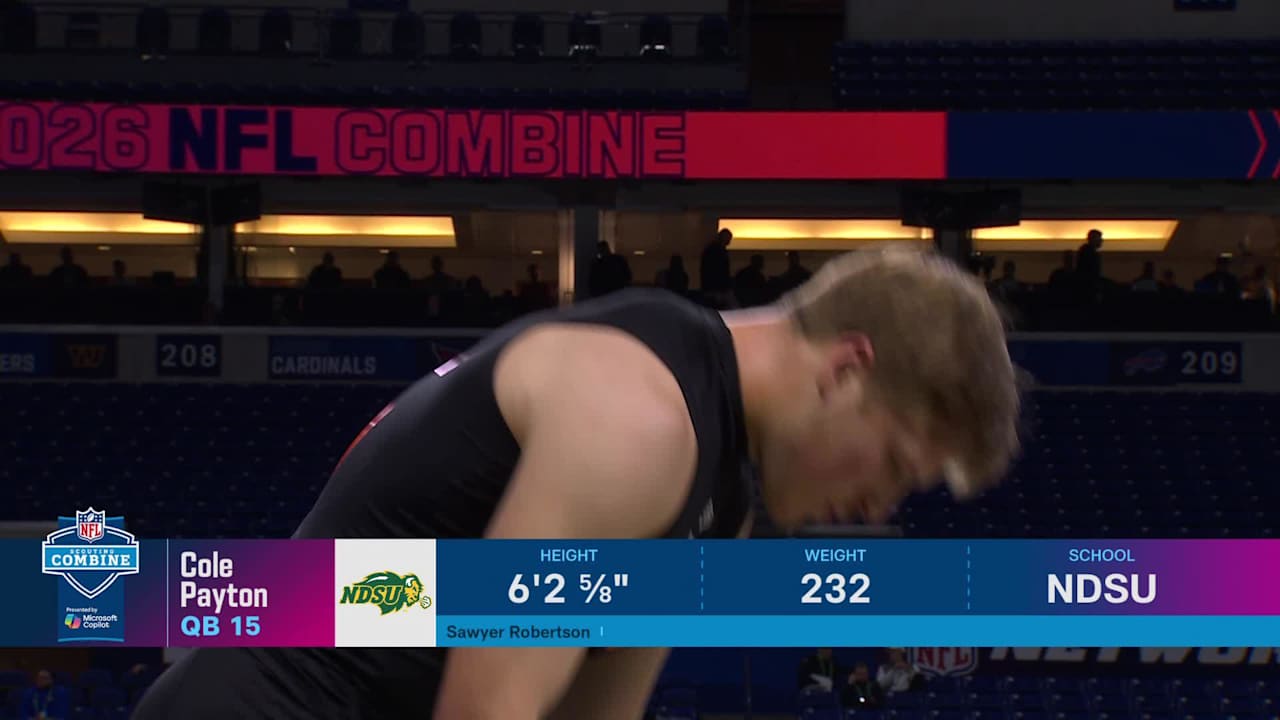 North Dakota State Bison quarterback Cole Payton runs the 40-yard dash at the 2026 NFL Scouting Combine.