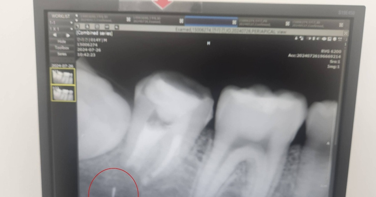 Seúl, Corea del Sur – Un estudiante de 17 años de la ciudad de Guri, provincia de Gyeonggi, ha sufrido una angustiante experiencia médica después de que un fragmento de un instrumento dental se rompiera durante un tratamiento de conducto radicular en una clínica dental local en abril de 2024. El fragmento quedó alojado en el hueso de la mandíbula del joven, y a pesar de una intervención quirúrgica para extraerlo, no se pudo retirar debido a su proximidad a un nervio importante, según informó la agencia de noticias Yonhap.