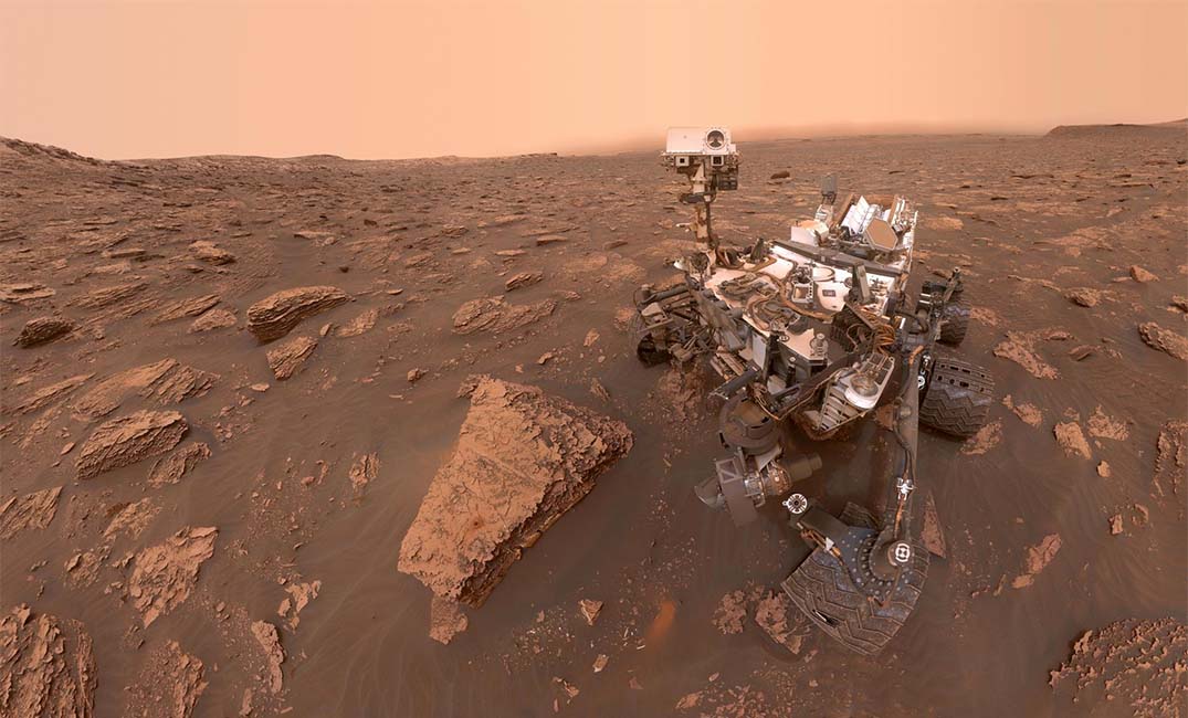 A self-portrait of NASA’s Curiosity rover taken on June 15, 2018, when a Martian dust storm had reduced sunlight and visibility at the rover’s location in Gale Crater.