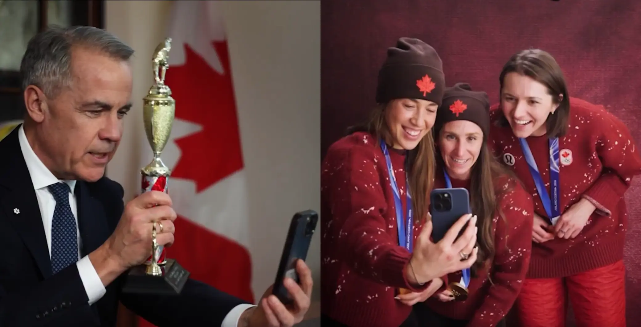 Carney publicó el clip en X el jueves, compartiendo una breve videollamada con las integrantes del equipo, Ivanie Blondin, Valérie Maltais e Isabelle Weidemann, quienes mostraron con orgullo sus medallas.