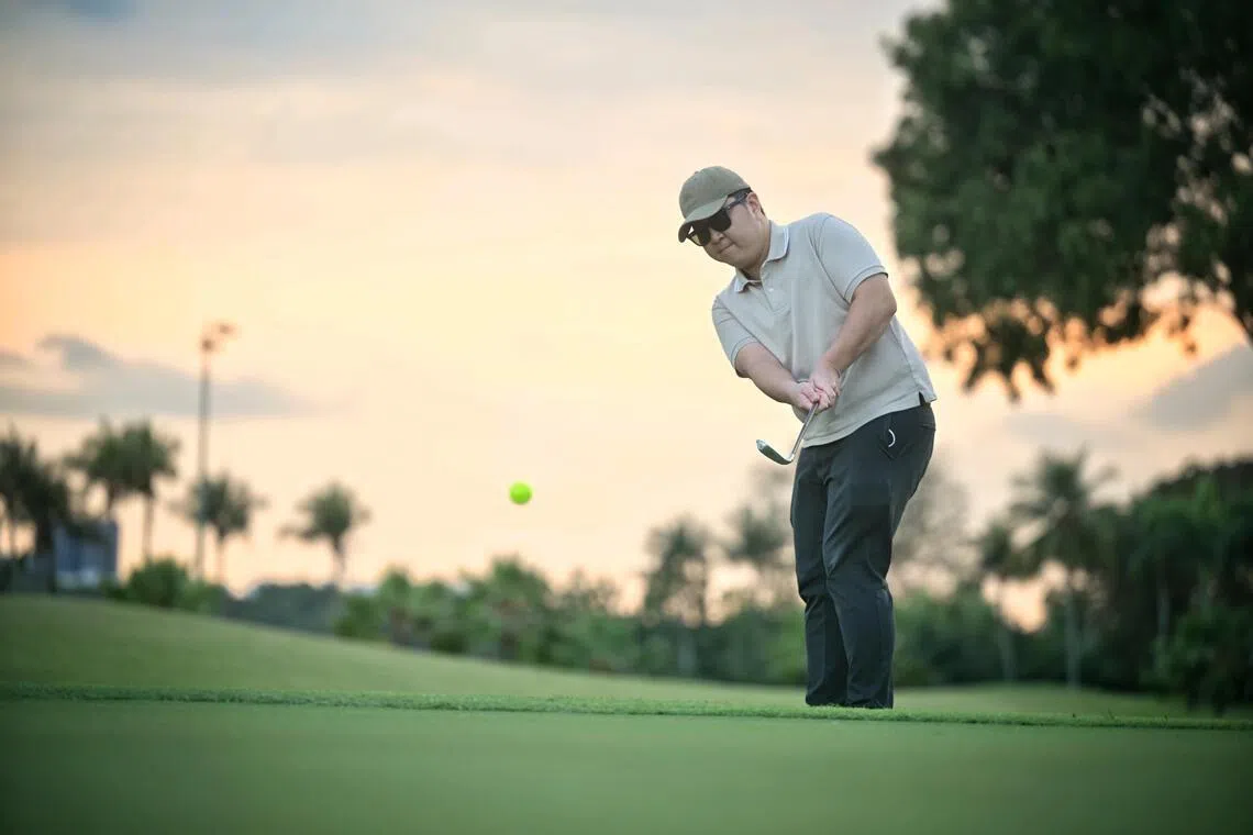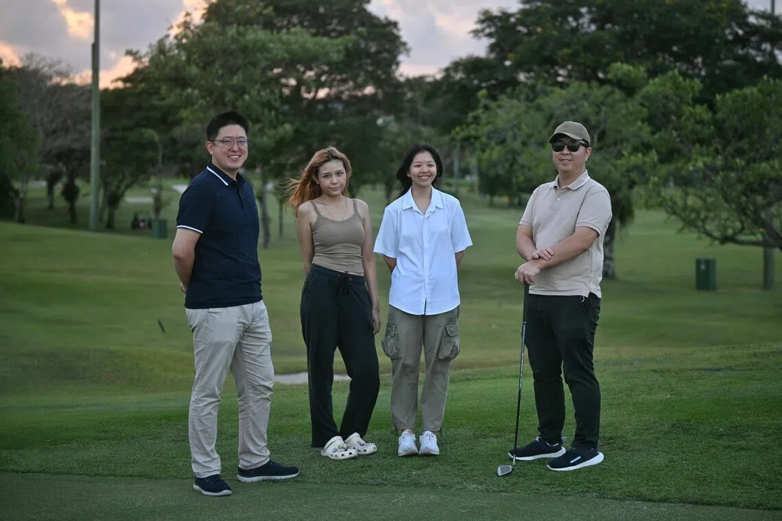 Mr Wee (right) at Orchid Country Club with his golfing friends, Dr Ryan Zhao, 36, Ms Israfina Deyana Decry Hardiyanto, 23, and Ms Liew Li Qi, 27.