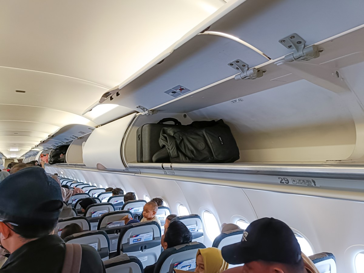 Debido a esto, no se le permitió guardar su bolso a sus pies y debía almacenarlo en el compartimento superior. Sin embargo, cuando abordó en el grupo 6, los compartimentos más cercanos ya estaban llenos de mochilas.