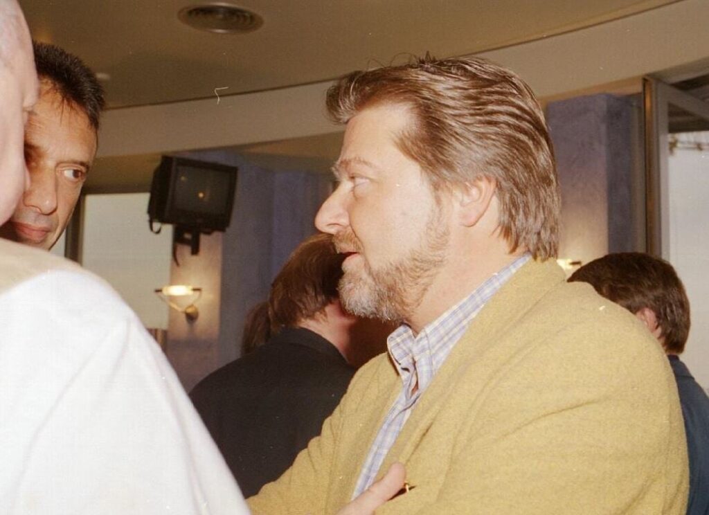 Lex Harding, un icono de Veronica, también estuvo en Vilvoorde. Naturalmente, Lex Harding estuvo allí. Lex Harding es radio. Cuando entra en una habitación, automáticamente suena un jingle en alguna parte. Junto a él estaba Erik de Zwart, otro icono. Jefe de programa, hombre con visión de conjunto, alguien que parece soñar solo con radio incluso mientras duerme. Pero eso no es cierto, también le gustan los trenes. Aunque esa es otra historia.