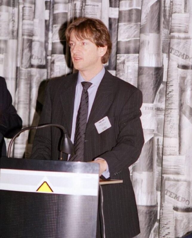 Lex Harding, un icono de Veronica, también estuvo en Vilvoorde. Naturalmente, Lex Harding estuvo allí. Lex Harding es radio. Cuando entra en una habitación, automáticamente suena un jingle en alguna parte. Junto a él estaba Erik de Zwart, otro icono. Jefe de programa, hombre con visión de conjunto, alguien que parece soñar solo con radio incluso mientras duerme. Pero eso no es cierto, también le gustan los trenes. Aunque esa es otra historia.