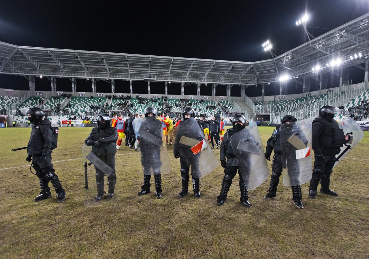 Una de estas botellas impactó en la cabeza de Michał Siejak, empleado de Korona (director de marketing y comunicación). Afortunadamente, solo sufrió algunas heridas que requirieron puntos de sutura y una noche en el hospital.
