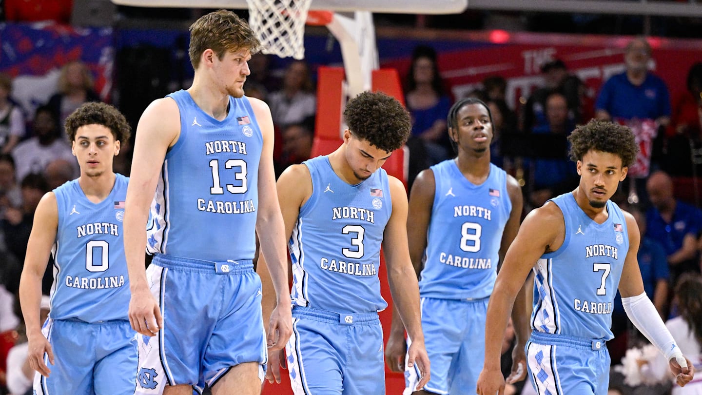 Derek Dixon. Mar 3, 2026; Chapel Hill, North Carolina, USA; North Carolina Tar Heels guard Derek Dixon (3) brings the ball up court against the …