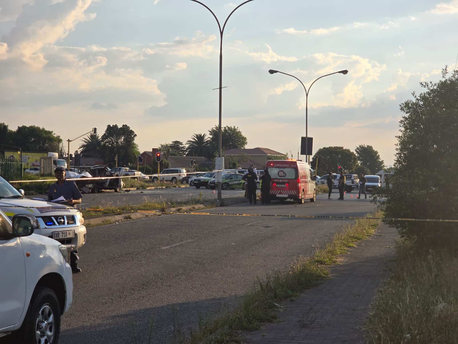 “A unos 4 km de las instalaciones, fue presuntamente emboscado por sospechosos que viajaban en un Mercedes-Benz blanco y otros dos vehículos no identificados, que se cree que son una camioneta y un sedán”, declaró Tsotsotso.