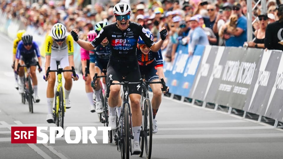 Noemi Rüegg (im Hintergrund in Pink) überquert die Ziellinie als 7.