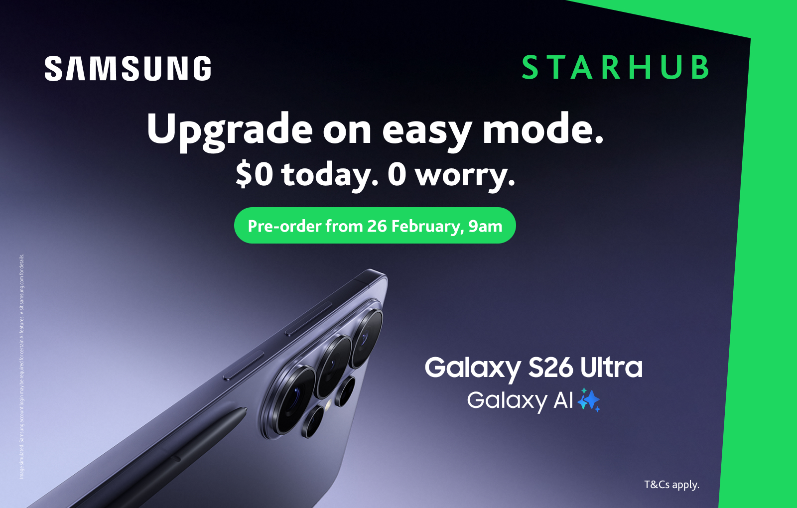 Singapur, 26 de febrero de 2026 – La espera ha terminado. La nueva serie Samsung Galaxy S26 ya está disponible para reserva desde 0 dólares con los planes 5G Unlimited+ de StarHub, ofreciendo a clientes nuevos y existentes una forma sencilla y sin preocupaciones de actualizarse a los últimos dispositivos insignia de Samsung.