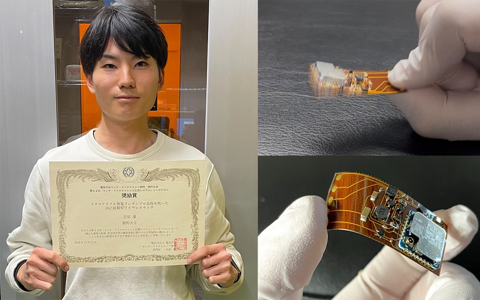 El premio fue otorgado por su investigación sobre un nuevo sensor inalámbrico que incorpora una función de generación de energía directamente en el sustrato del circuito, utilizando “metamateriales”, estructuras artificiales con propiedades especiales no encontradas en la naturaleza. A diferencia de los dispositivos electrónicos convencionales que requieren baterías, este desarrollo permite la creación de un “sensor IoT flexible” delgado y ligero que funciona sin baterías, convirtiendo directamente la energía del movimiento, como la flexión o la vibración del sustrato, en electricidad.