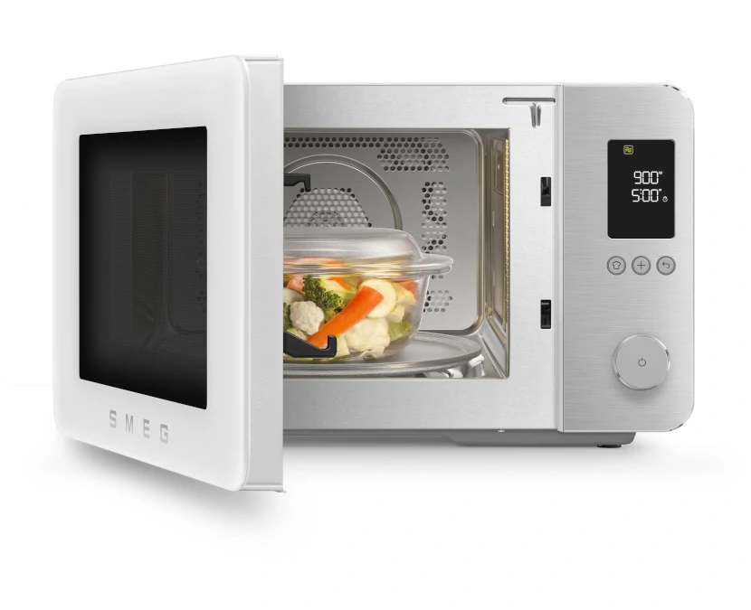 De un objeto genérico a una joya de la cocina: Smeg ha logrado esta hazaña con su nueva combinación de microondas de sobremesa. El dispositivo, con diseño Collezione, no solo simplifica preparaciones complejas al cocinar los alimentos de forma delicada y acelerar las rutinas culinarias, sino que también es una elegante pieza de diseño que se exhibe con gusto en la encimera. La microondas, con un atractivo acabado mate, está disponible en dos versiones: una con grill, aire caliente y función Air-Fry, y otra solo con grill. Ahorrar tiempo puede ser así de atractivo.