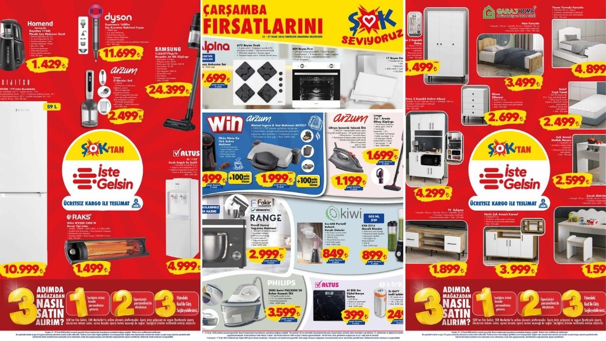 ŞOK ha programado una serie de descuentos entre el 21 y el 27 de enero, incluyendo la amasadora mencionada, una plancha con caldera y una báscula, según informa Sabah. Dünya Gazetesi también destaca la publicación del catálogo actual de ŞOK, anticipando las ofertas de la semana.