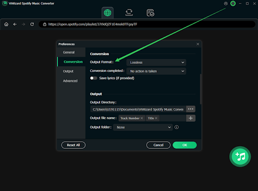 Además de MP3, ViWizard te permite convertir la música de Spotify a: AIFF, WAV, FLAC, M4A, M4B. Esta flexibilidad garantiza la compatibilidad con cualquier dispositivo o configuración de audio.